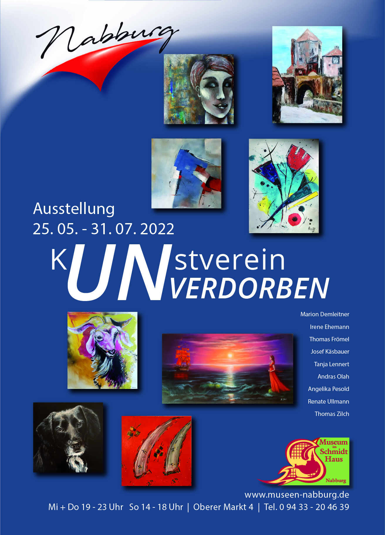 Neun Künstler*innen des Neunburger „Kunstvereins Unverdorben eV“ präsentieren ab dem 25. Mai in einer Ausstellung ihre aktuellen Werke im Museum im Schmidt-Haus in Nabburg. So vielfältig ihre kreativen Umsetzungen auch sein mögen: Gemeinsam ist allen die Leidenschaft für die Kunst und die malerische Auseinandersetzung mit Menschen, Tieren, Landschaften und Architekturen in gegenständlichen bis abstrakten Arbeiten.